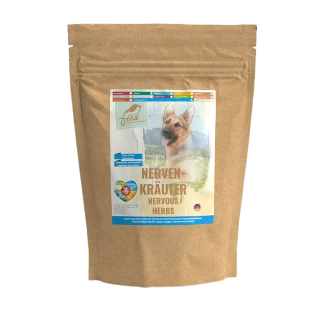 Natural Feed Nerven kombiniert die Kräutermischung mit Magnesium, Aminosäuren und B-Vitaminen und versorgt das Nervensystem mit spezifischen Nährstoffen.