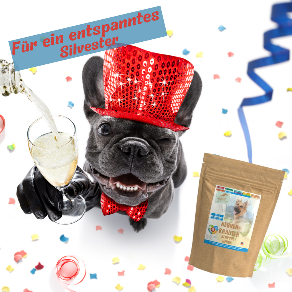 Unser Tipp: Füttern Sie Ihrem unsicheren und geräuschempfindlichen Hund ab Anfang Dezember unsere Nervenkräuter, um eine Erleichterung über die Feiertage und Silvester zu schaffen.