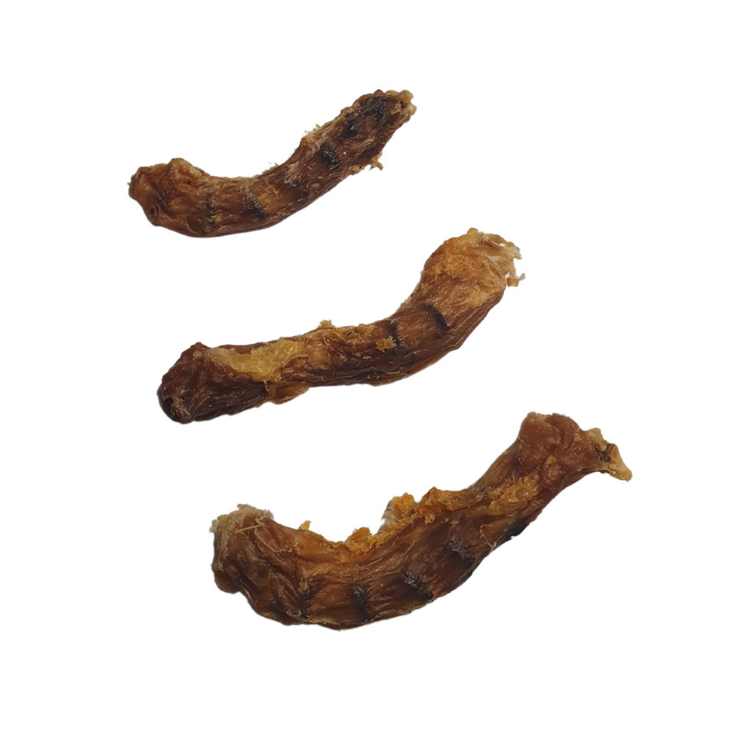 Luftgetrocknete Hühnerhälse sind eine schmackhafte Belohnung für große und kleine Vierbeiner. Auch viele Katzen finden Ihren Gefallen an den natürlichen Snacks. Hühnerhälse splittern nicht, versorgen Ihren Liebling aber trotzdem mit wertvollem Calcium.