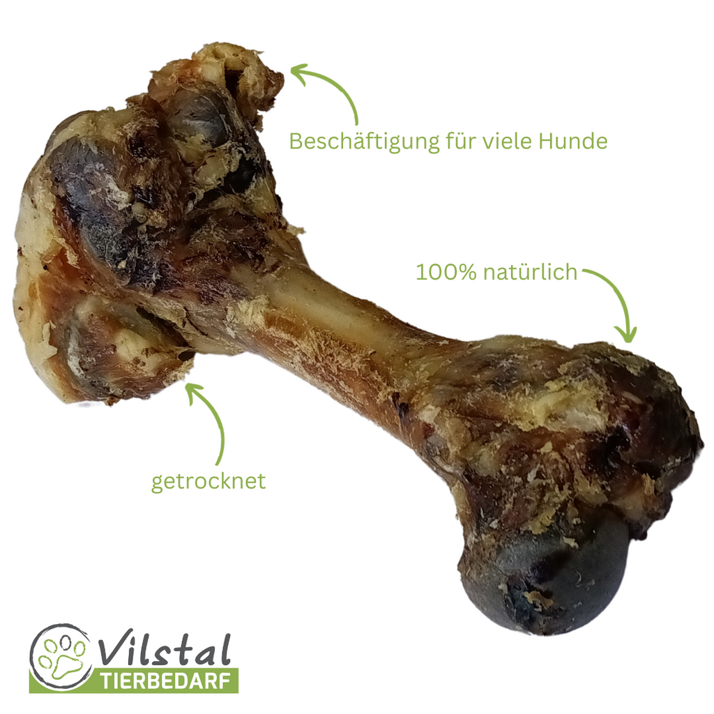 ... nicht zum kompletten Verzehr gedacht. Es sollte nur das Fleisch am Knochen und die äußere Schicht gefressen werden. Bitte nehmen Sie ihrem Hund daher den Knochen weg, wenn er ihn komplett zerlegen möchte.