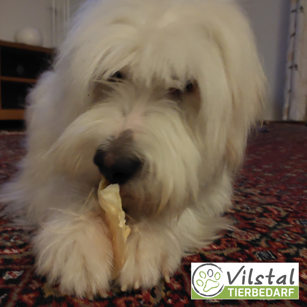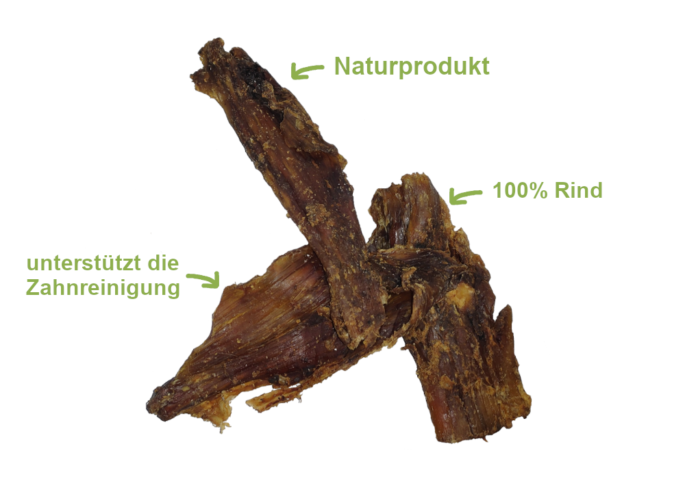 Ergänzungsfuttermittel für HundeUnsere Rindernackensehnen sind frei von Konservierungs-, Farb- und Lockstoffen! Wir verwenden weder Zucker, noch Karamell oder ähnliches. Es handelt sich bei unseren Premium-Rindernackensehnen um schonend getrocknete Snacks, die für fast alle Hunde geeignet sind - vom Junghund bis zum Senior. Das Zerkauen der Rindernackensehnen unterstützt die Zahnreinigung und sorgt für ein langes Kauvergnügen.