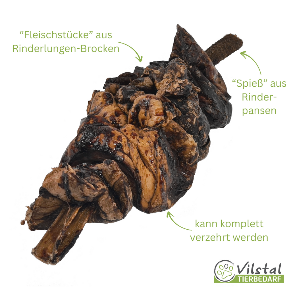 XL-Schaschlik-Spieße für Hunde aus Rinderpansen und Rinderlunge