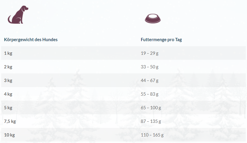 Hund 7,5kg: 87gr.-135gr. pro Tag