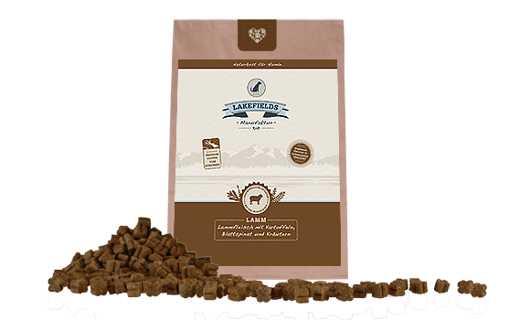 Das Trockenfleisch-Menü Lamm ist ein getreidefreies Alleinfutter für ausgewachsene Hunde.