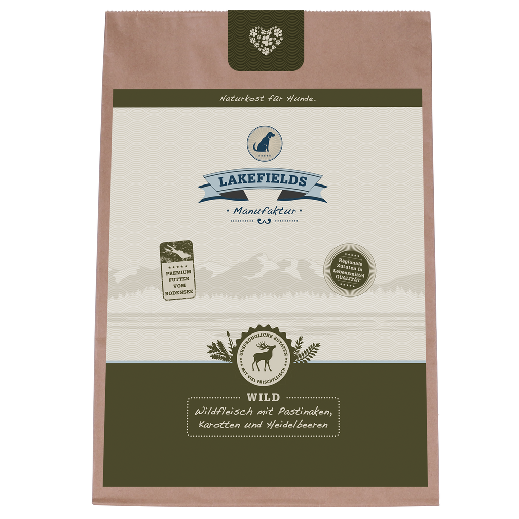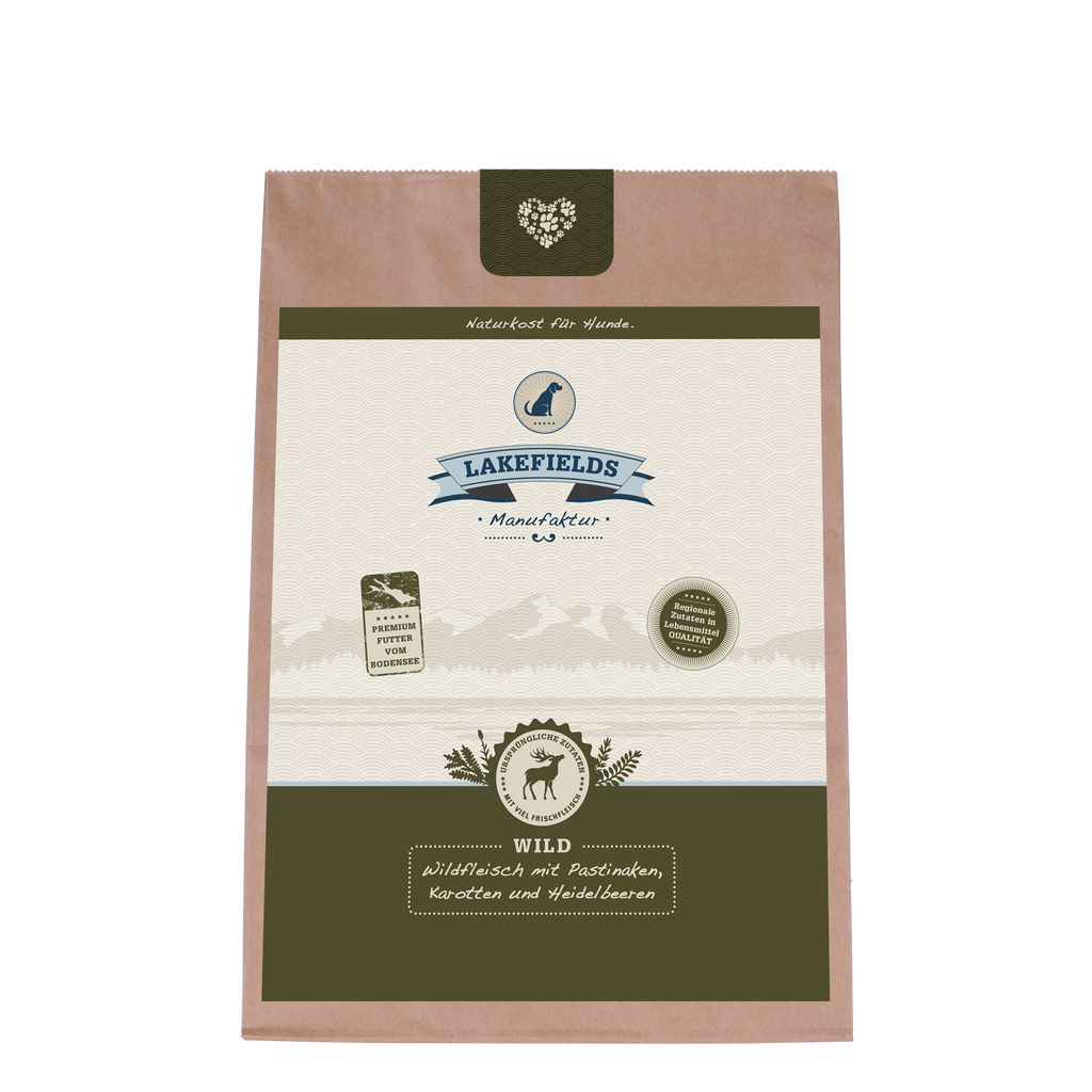 Unser Trockenfutter Wild enthält 68% Fleisch und Innereien ausschließlich von einheimischen Hirschen und Rehen. Tierische Bestandteile anderer Wildtiere werden nicht verarbeitet. Daher ist unser Futter mit Wild eine besondere Delikatesse. Weitere hochwertige Zutaten wie Birne, Pastinaken und Rote Bete runden das vollwertige Menü, das wir traditionell im Steinofen backen, ideal ab.