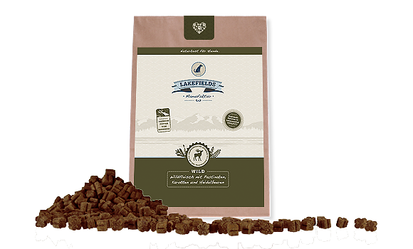 Das Trockenfleisch-Menü Wild ist ein getreidefreies Alleinfutter für ausgewachsene Hunde.