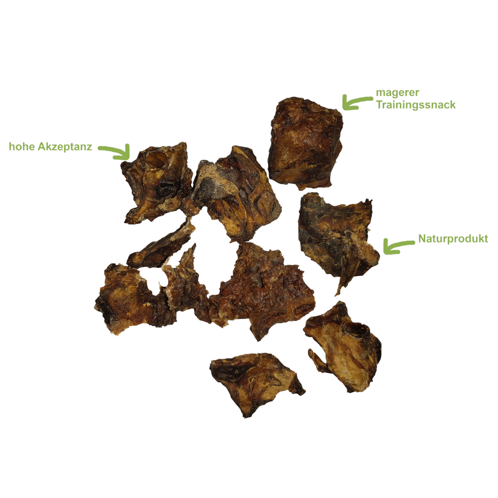 Sie sind für fast alle Hunde geeignet sind - vom Junghund bis zum Senior. Die Würfel eignen sich hervorragend als natürliches Leckerli im Training und sind besonders mager und schmackhaft!